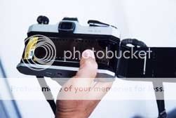 3 ปิดฝาหลังกล้องทดลองขึ้นฟิล์มและกดชัตเตอร์ประมาณ 2 ภาพ (เพราะเป็นส่วนหัวฟิล์มที่โดนแสงแล้ว)ตรวจสอบความเรียบร้อยของฟิล์ม โดยหมุนก้านกรอฟิล์มกลับให้ตึง เมื่อขึ้นฟิล์มก้านกรอฟิล์มกลับจะหมุนตาม แสดงว่ากล้องถ่ายภาพพร้อมที่จะใช้งานได้แล้ว
